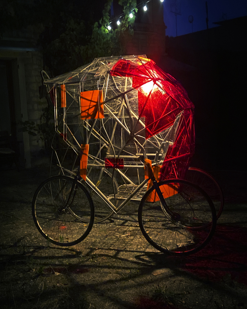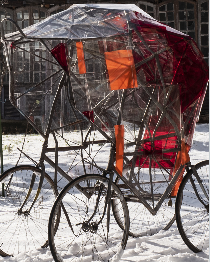 Son œuvre invite à se plonger dans le monde de l’enfance, du souvenir et du rêve et utilise la métaphore du voyage dans le temps et l’espace. Elle s’élabore avec des matériaux récupérés, assemblés en un équilibre fragile, revendiquant l’art du bricolage.
